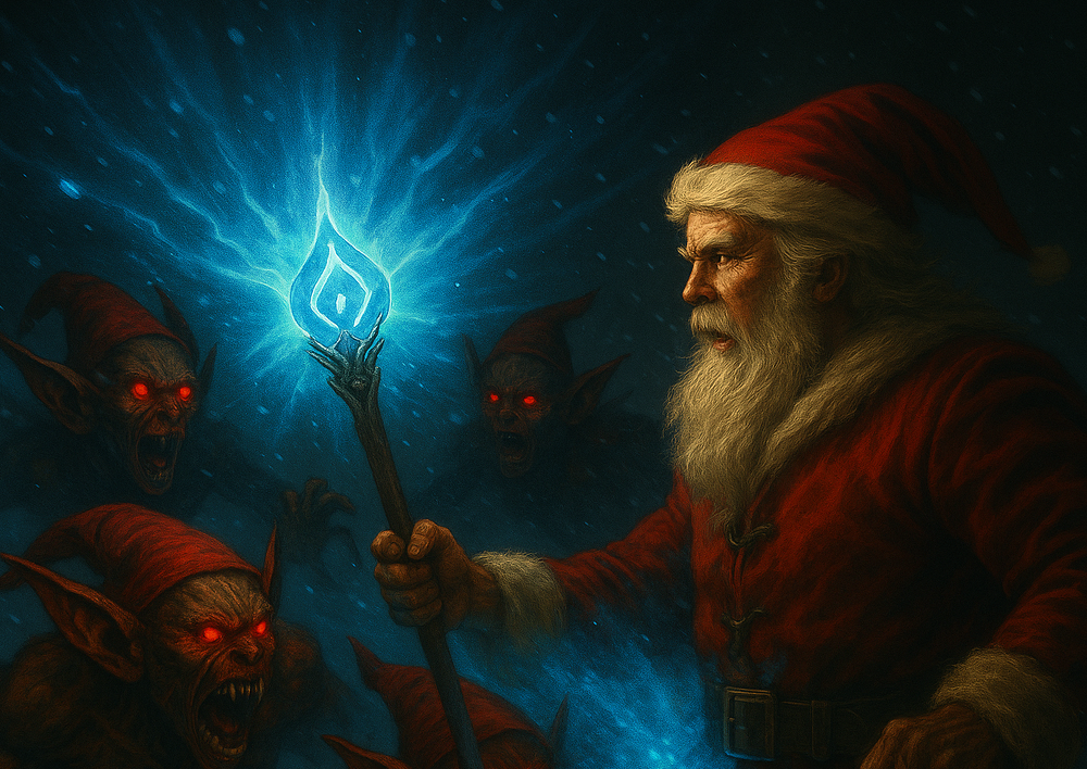 And on Christmas Eve, as the sleigh lifted into the icy sky, Santa looked down over the village, battered, scorched, but alive. The elves waved up at him, whole again, smiling as though the nightmares of the night before had melted with the morning frost.